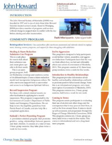 We are a member organization of the John Howard Society of Canada, and have been operating in Manitoba since the 1950s.