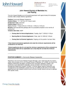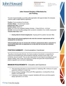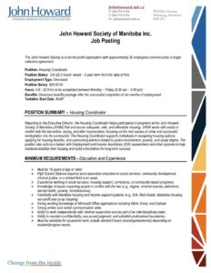 Thanks for stopping by to check out our employment opportunities. If you don’t see any openings below, we encourage you to send us a cover letter and resumé for future openings; send by email to careers@johnhoward.mb.ca.